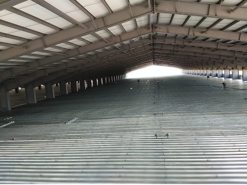 مرحله اول :نصب ورق وفلاشینگ ها با دستگاه میخ کوب بصورت فیتاب محکم شده بصورتی که ورق ها جابجا نشود